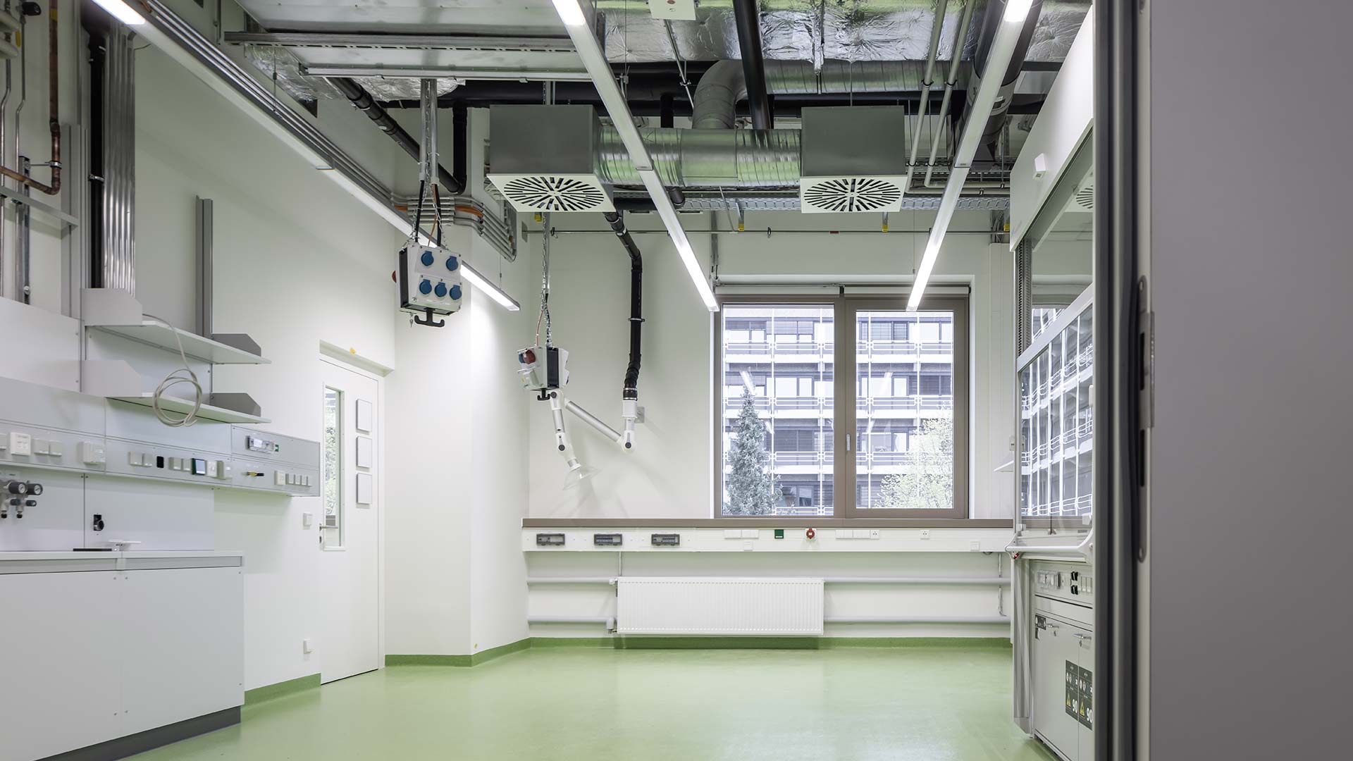 Die große Herausforderung des Generalplanerteams unter der Leitung von DGI Bauwerk, die 2016 den Zuschlag in einem Verhandlungsverfahren [VOF] erhielt, liegt darin, die sehr komplexen baulichen und technischen Anforderungen [u.a. Strahlenschutz, Schwingungsarmut, komplizierte Gründungssituation sowie bauliche Schnittstellen zu Bestandsgebäuden aus unterschiedlichen Entstehungszeiten] in einem stimmigen Konzept zusammenzuführen und die reibungslose Bauausführung der diversen Teilbaumaßnahmen bei laufendem Universitätsbetrieb sicherzustellen.