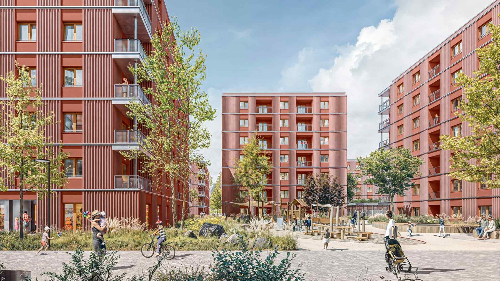 DGI Bauwerk plant im Generalplanungsteam mit DMSW ein neues Quartier in Holzbauweise. Geplant sind über 500 Wohnungen, eine integrierte Kindertagesstätte sowie ergänzende Gewerbeflächen. Auftraggeber ist die HOWOGE.
