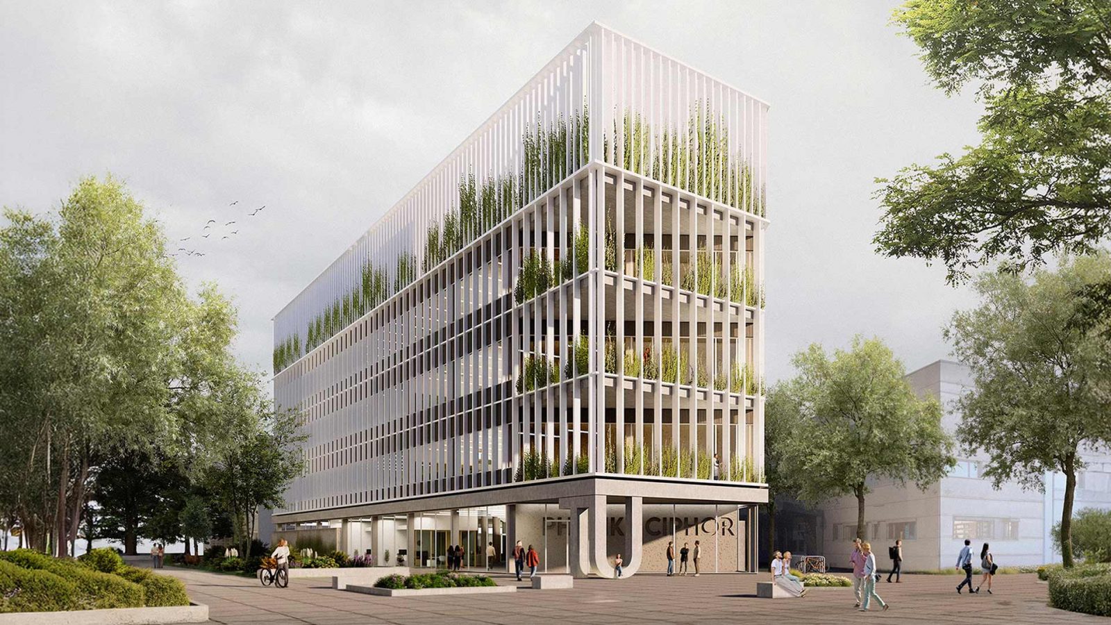 Fassaden-, Dachbegrünung, Photovoltaik und Wärmerückgewinnung sind systematisch in das Gesamtgefüge integriert und unterstützen die energetische Performance des Gebäudes. Eine BNB-Zertifizierung „Silber“ ist vorgesehen.